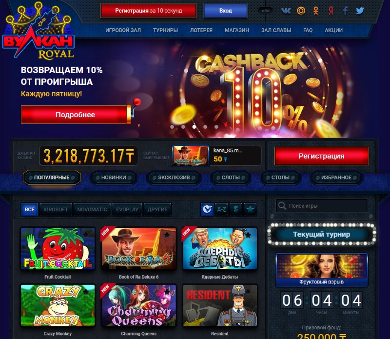 Клиенты казино получают выигрыш не только за игру на понравившихся слотах, но и за участие в различных еженедельных турнирах. Хотите выиграть в лотерее или пройти увлекательный квест? Вулкан Роял предоставляет своим игрокам такую возможность.